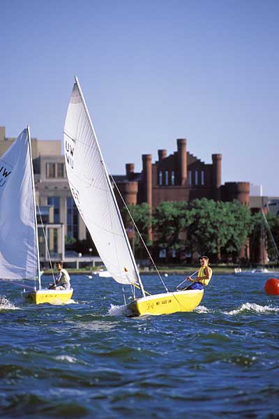 At the Memorial Union boat house, 800 Langdon St., 608-576-9593 or 608-262-7445. Open 11am - sunset. Rent a canoe ($7/hour), rent a sailboat or windsurfer if you already know how ($25/hour + $5/hour for extra passengers), or take lessons (2-4 people, 2-3 hour blocks, $30 per person), or go on a guided sail with an instructor (2-6 people, first hour $65, each additional hour $30). Make a reservation, if possible. At least one person must be a Union member. A six-month introductory membership is available for $30.
